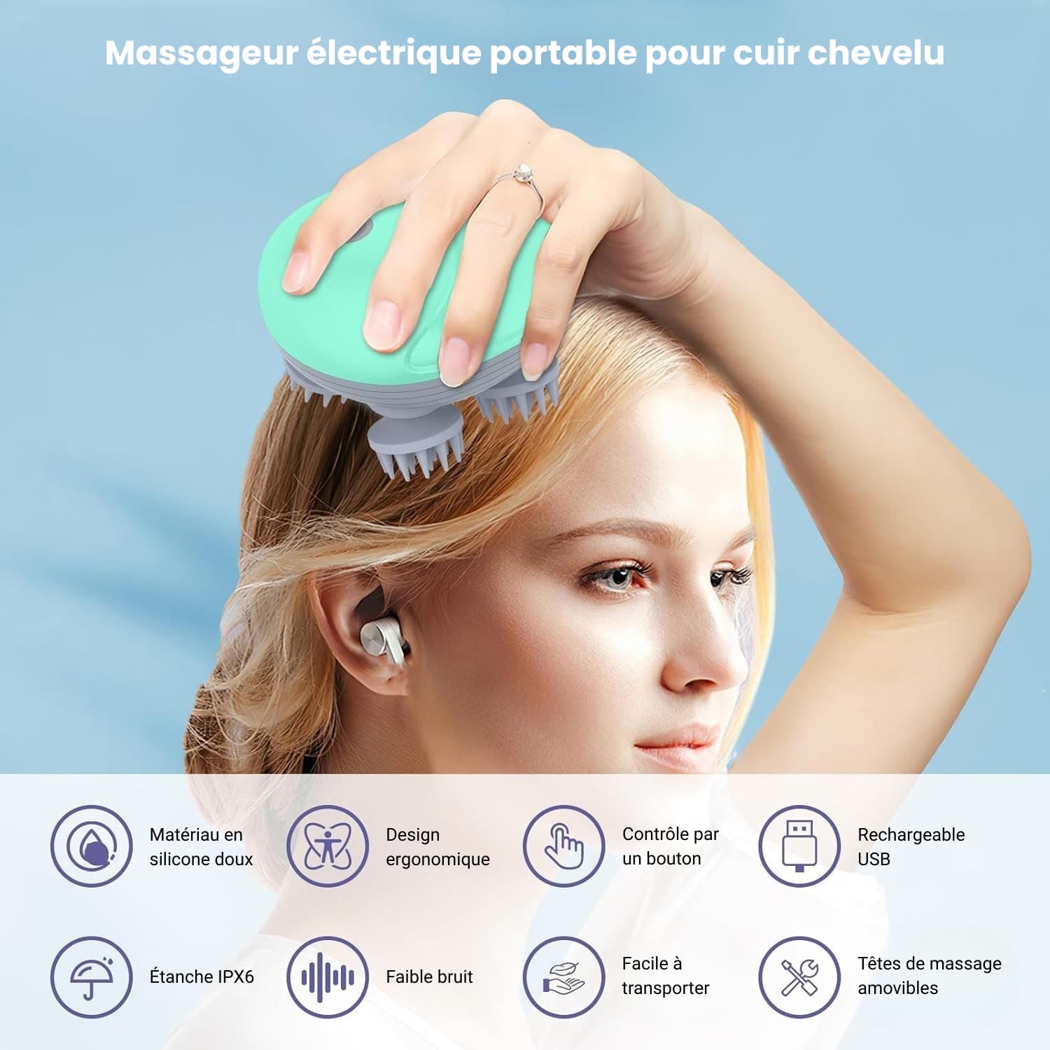Ce mini masseur de tête électrique est d’une simplicité remarquable grâce à son bouton unique. Rechargeable par USB-C, il offre plus d’une heure d’autonomie pour des sessions de massage où que vous soyez. Étanche, il peut être utilisé sous la douche pour soulager les tensions nerveuses et favoriser la relaxation profonde.